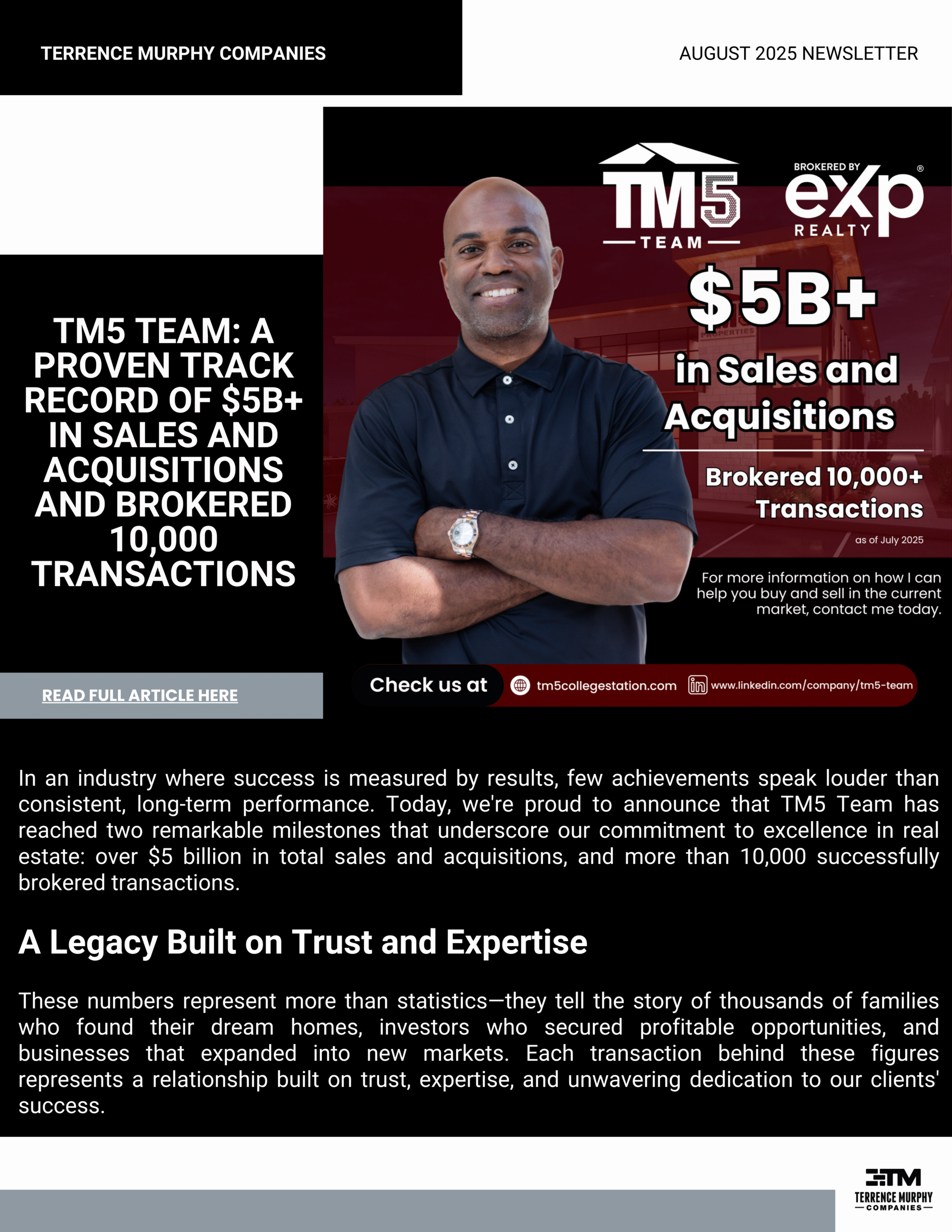 TM5 Team: A Proven Track Record of $5B+ in sales and acquisitions and brokered 10,000 transactions